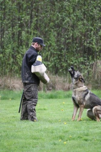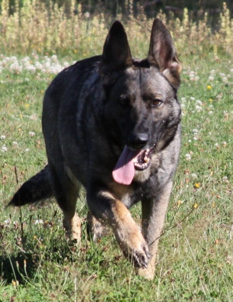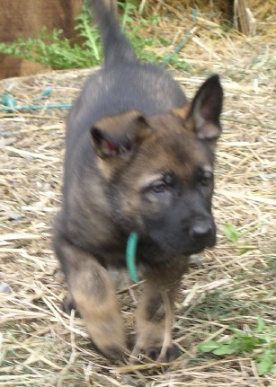 Urs is focused and intense in all three phases,with extreme hardness,courage and fight in the protection.His conformation is impeccable with a wonderful balance of substance and "V"structure with the old DDR head type still being very prolific. He is a son of the Belgian dog, Quattro v Haus Antverpa Sch3,IPO3, and great-grandson of the legendary Gento v Haus Larwin.Other great dogs in 4 generations of his pedigree are Bojar v Salztalblick,BSP Fero v Zeuterner Himmelreich,Quindt Baruther Land (Held V Ritterberg),Peggy v Flamings Sand,Greif v Blitsaerd,Robby v Glockeneck,BSP Urs ad Hopfenstrasse and Kimm v Wersaufer,a dog noted for his breed type,fighting drive and pre-potency.He produced many dogs in the German National championships.His excellent pedigree is one containing old,proven lines that are consistently producing dogs from Working K-9s to Therapy dogs. Urs has passed on now but his legacy lives on in our breeding program through his progeny . They are passing on their sires character and versatility,clear headed nature and solid nerves. Some of his progeny can be seen below.